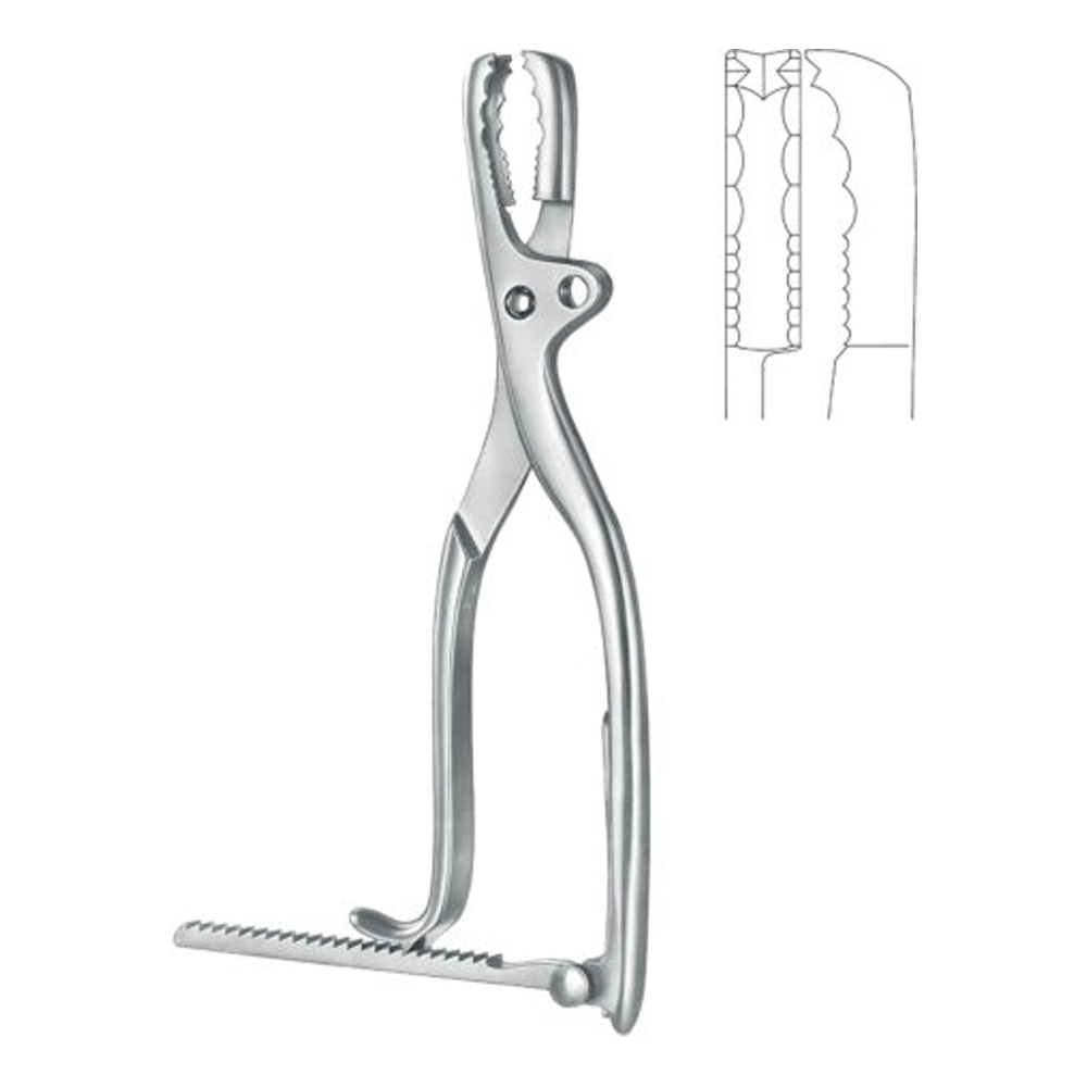 - Includes serrated jaws for enhanced grip on bone surfaces.