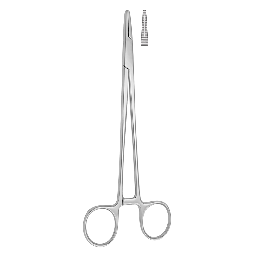 • Design Features: Features a straight jaw design with fine tips, allowing for precise gripping and manipulation of needles during suturing.