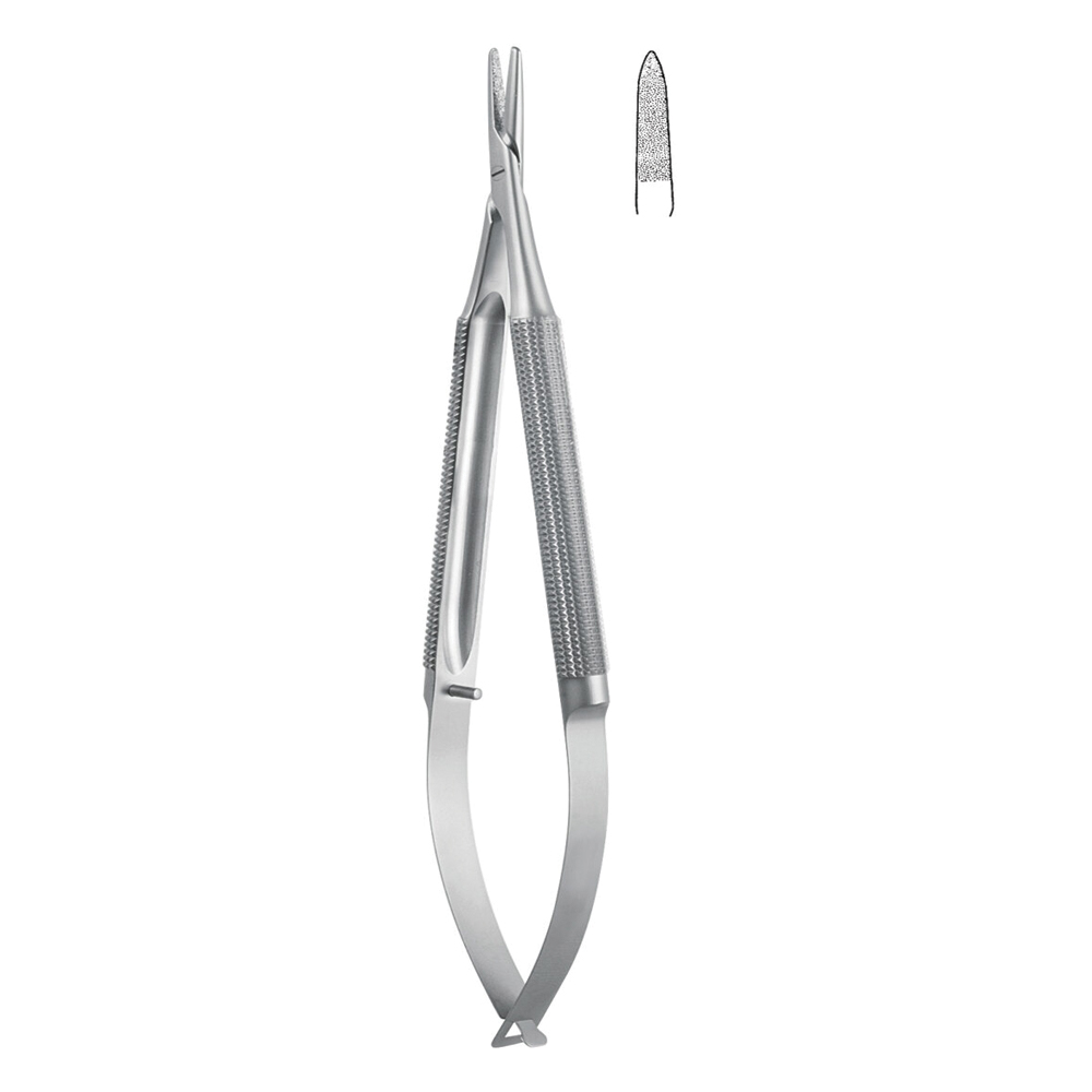 - Jaws: Fine, smooth jaws for secure grip on micro needles without damaging them.