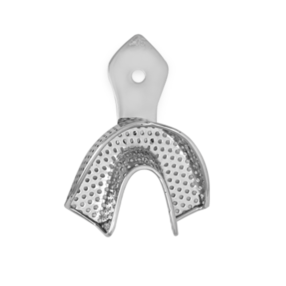 - Type: Perforated design to improve adhesion of impression materials.